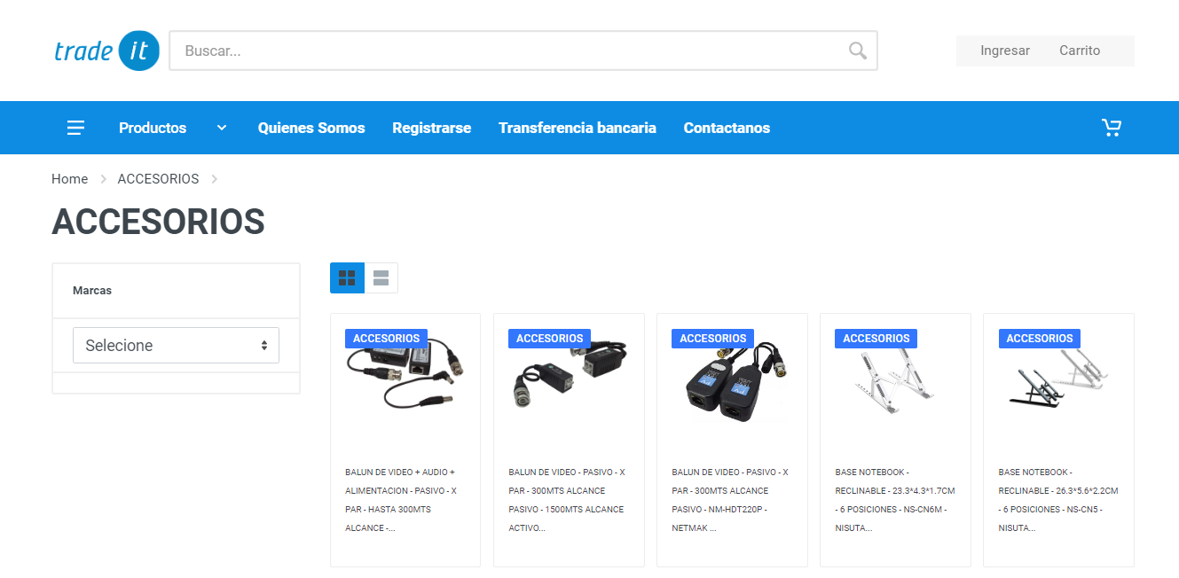 En este caso, si nos ubicamos en la fila de Accesorios, nos redirige exitosamente al sector de la web correspondiente a ella como el ejemplo de la imagen que sigue: