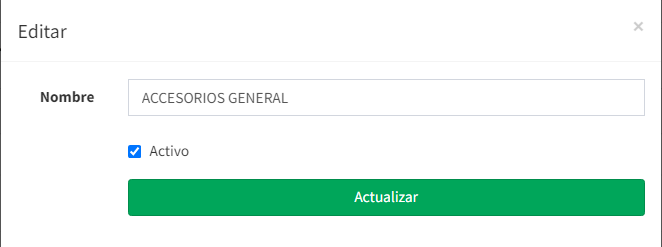 Por lo cual, en la subcategorias, se muestran en diversas filas los contenedores de las mismas, con el tilde activado, de ser necesario. Pero asi mismo, en cada una de ellas, existe el botón "EDITAR", la cual nos permite en cada caso cambiar el nombre de la variable, como así mismo, establecer si dicha subcategoria debe o no estar en el modo activo: